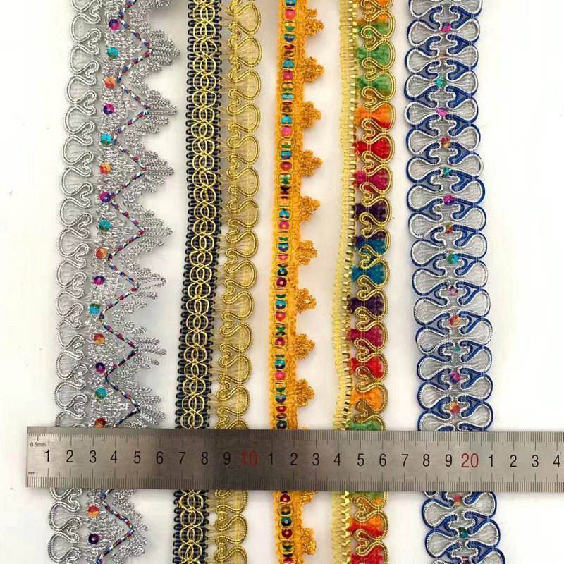 Аксесуари для одягу Золота та срібна металева межа з мереживом Мульсольорова блискітка Золота нитка металева мережива